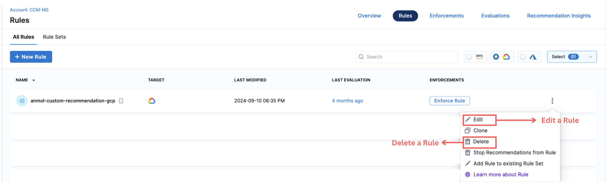 Harness Concepts: Rules, Rule Sets, Enforcements and Evaluations to optimise cloud costs