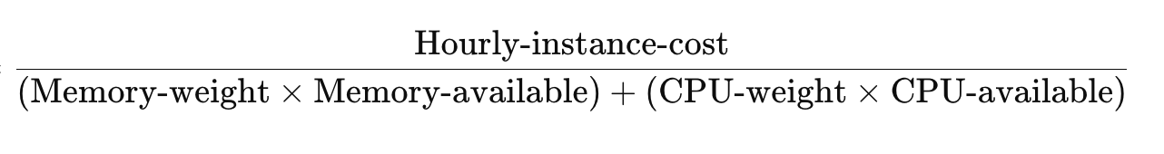 Pod1 Unused Cost =(Pod1 vCPU unused ratio × Instance vCPU unused ratio × vCPU available × Cost per vCPU hour) + (Pod1 Memory unused ratio × Instance Memory unused ratio × Memory available × Cost per GB hour)