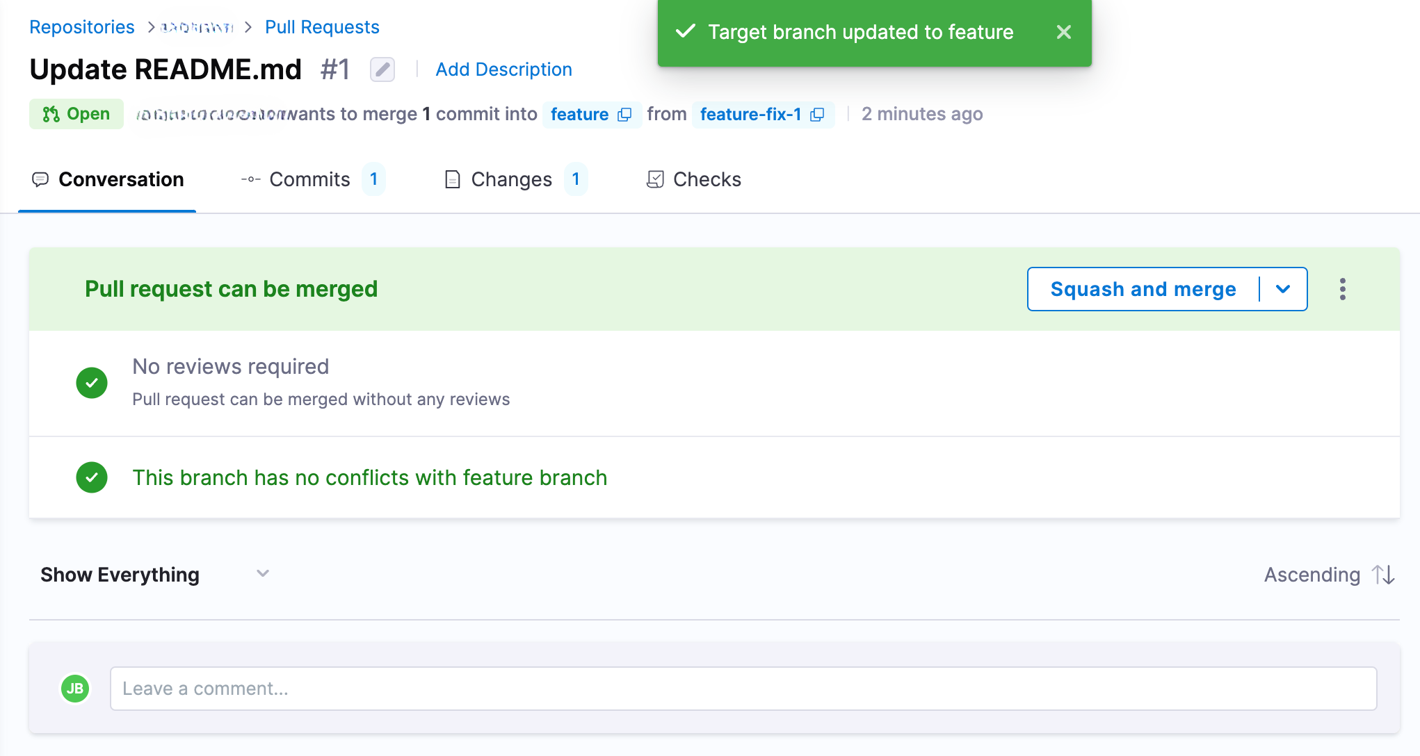 - A dropdown appears with available branches. Select the branch you want to set as the new target.