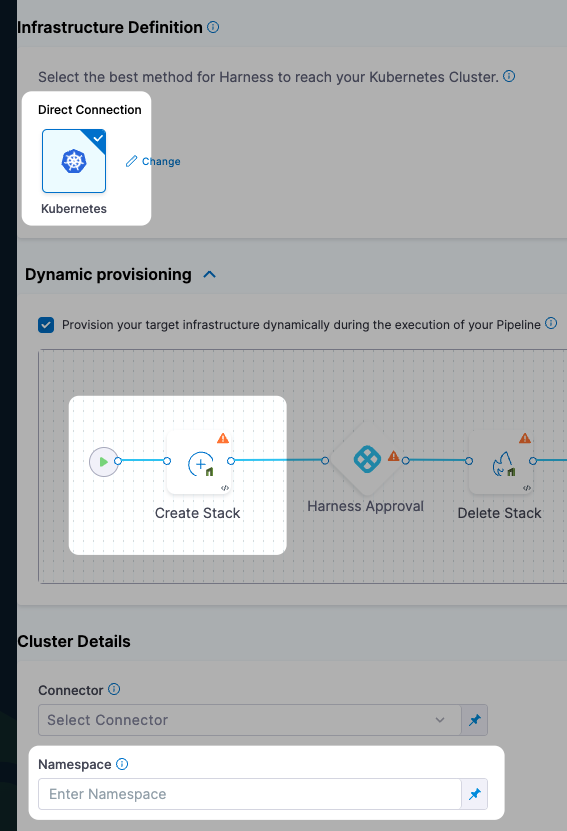 2. If you will deploy directly into the provisioned resource as part of the deployment target, you need to provide the required Infrastructure Definition settings so Harness can target and deploy to the provisioned infrastructure.
