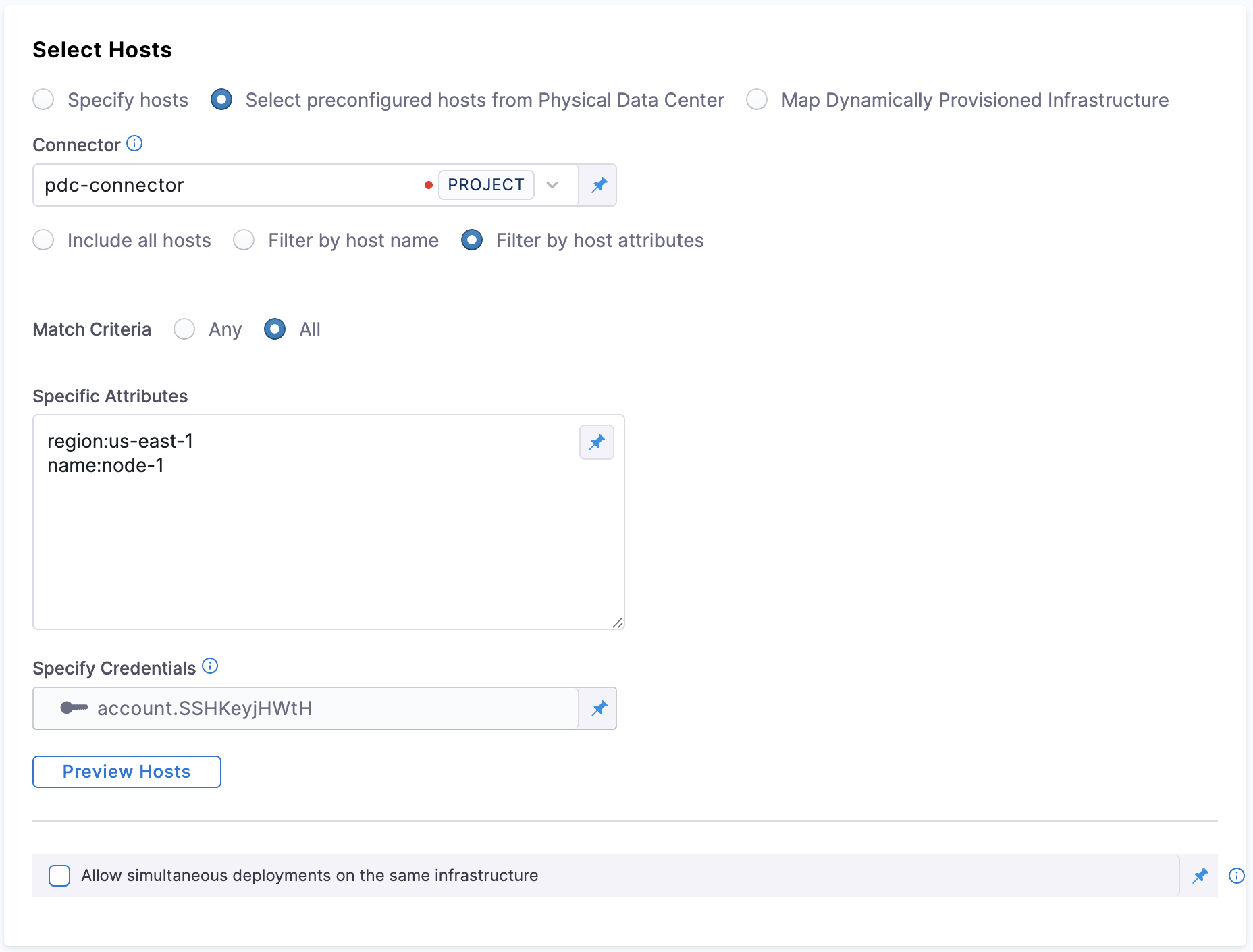 This setting is available when you pick Select preconfigured hosts from Physical Data Center under Select hosts and select Filter by host attributes