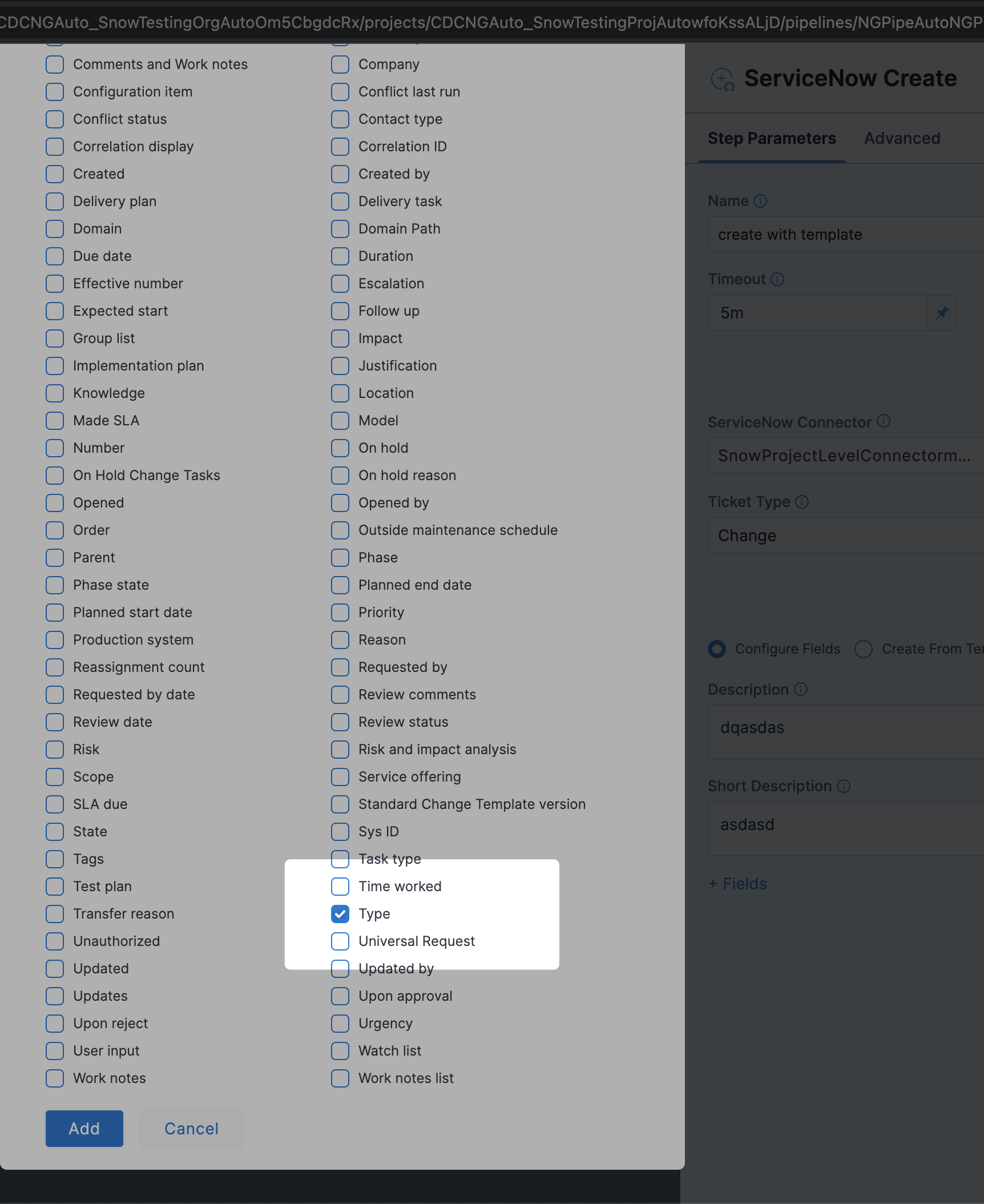 • You must add a Harness ServiceNow connector before or during the Create ServiceNow step setup.