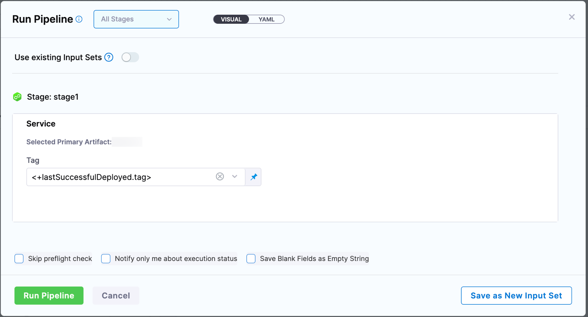 <+lastSuccessfulDeployed.tag>, the pipeline will deploy the most recent successful artifact tag associated with the service. - This functionality is supported for the following container artifact types: