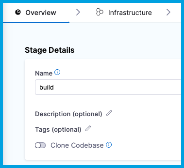 3. Make sure Clone Codebase is enabled. This tells Harness to clone the codebase into the build environment before running the steps in the stage.