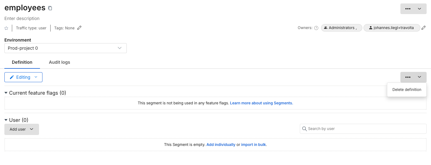 • Then, delete the segment definition and repeat these steps for all environments.