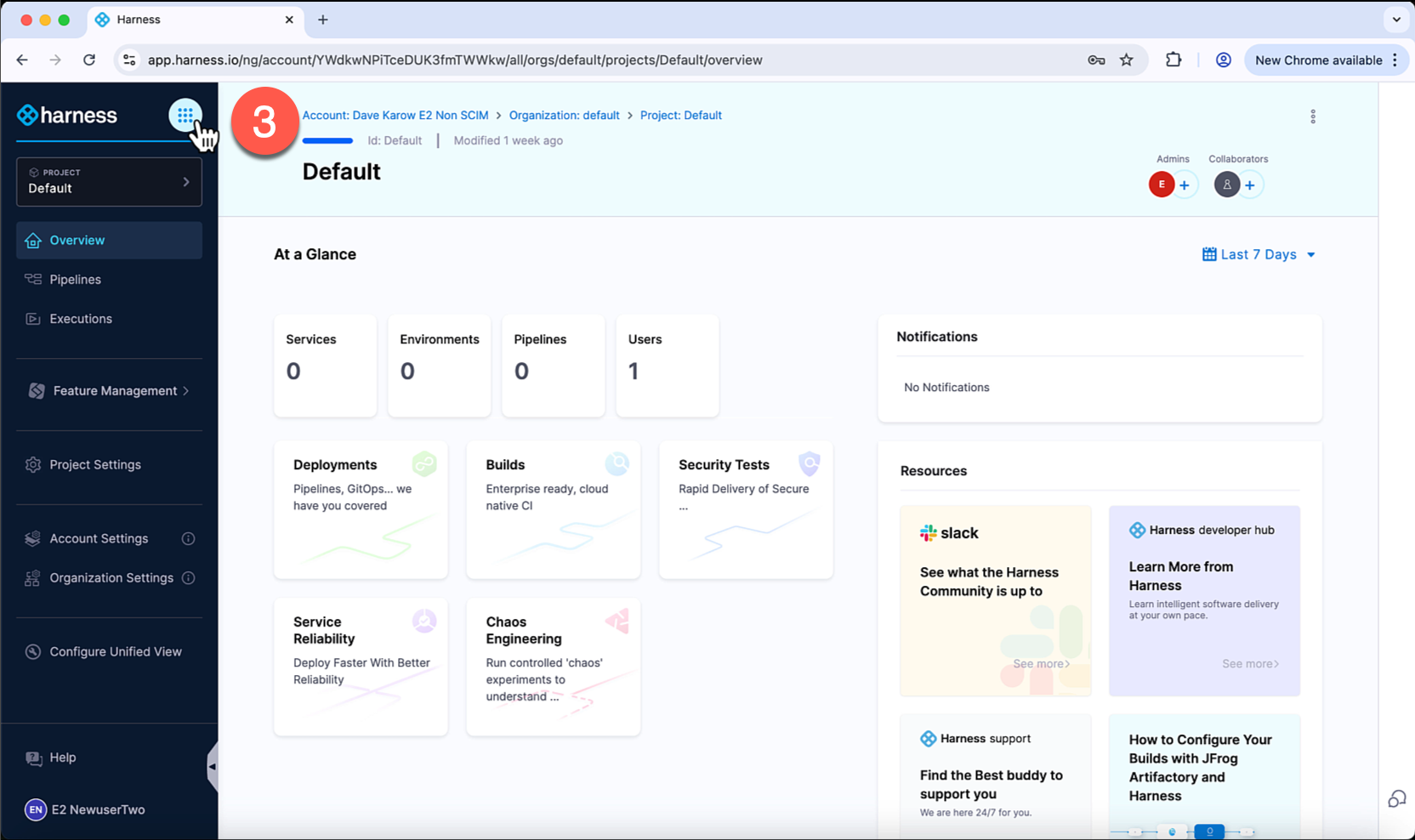 Step 3: Click the Grid Icon (Next to the Harness logo)
