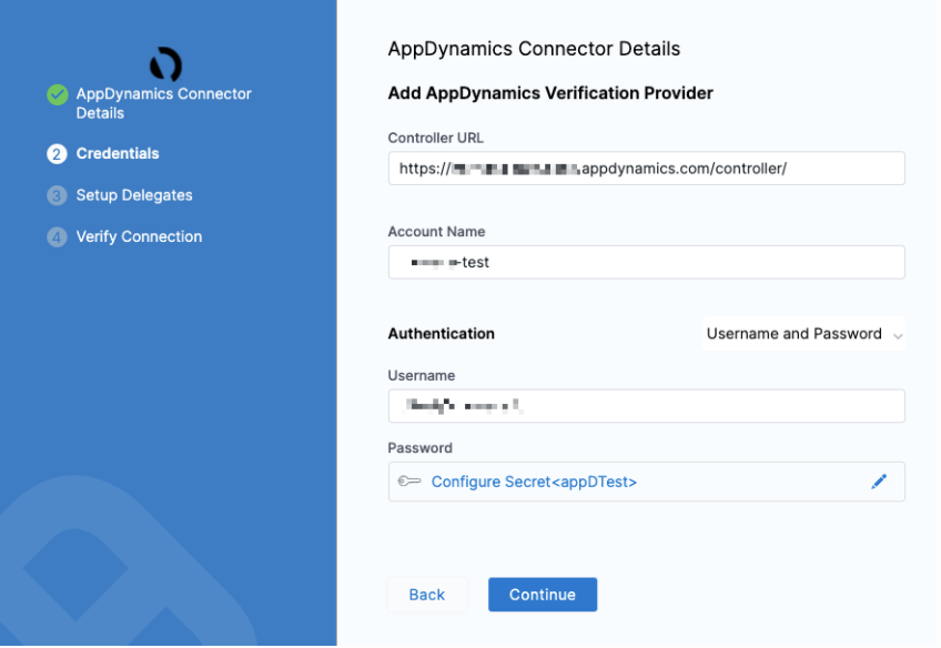 In Find an AppDynamics application enter the name of the application and select an option from the list.