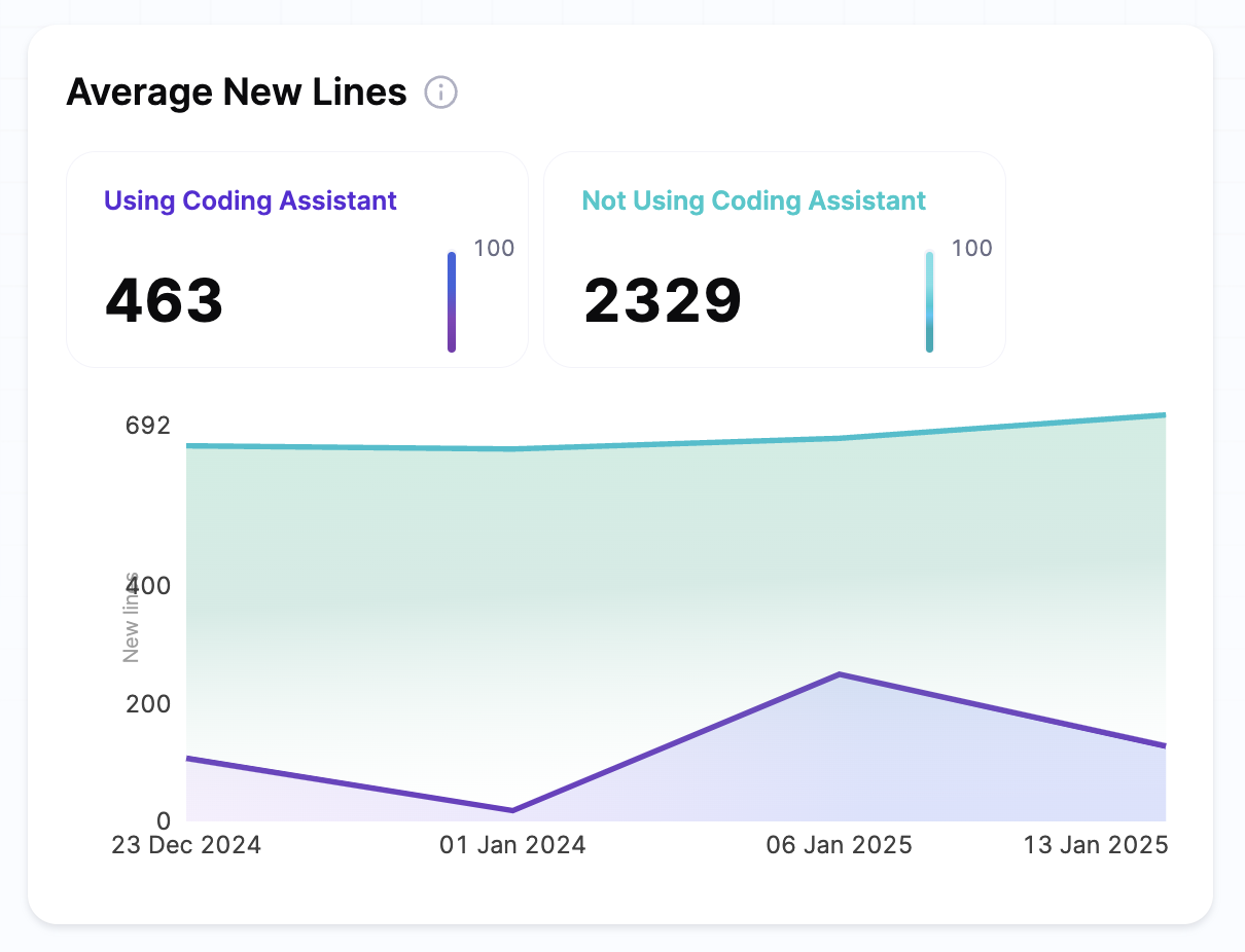 - If developers using AI code assistants have a higher average number of PRs per week, this suggests that AI-assisted coding helps improve developer efficiency.