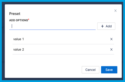 - Preset: Cells can only contain values from a predefined list of possible values. If you select this option, you must add predefined values.