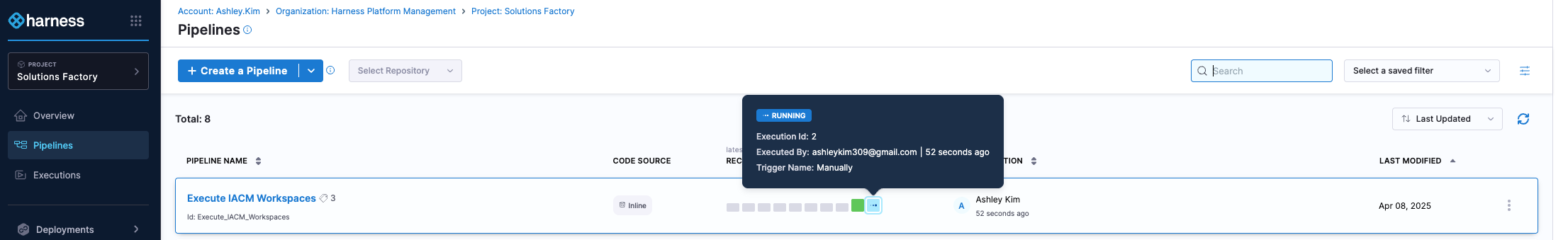 After this pipeline is done, it will kick off the Execute IACM Workspace pipeline.